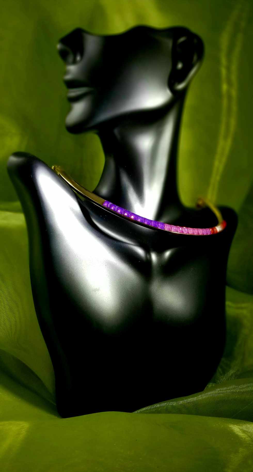 Indulge in the ultimate fashion statement with our Helix Necklace. Made with a lightweight, flexible gold filled chain and adorned with vibrant pink, purple, and dark red stones, this necklace will elevate any outfit. Perfect for the stylish and forward-thinking woman.